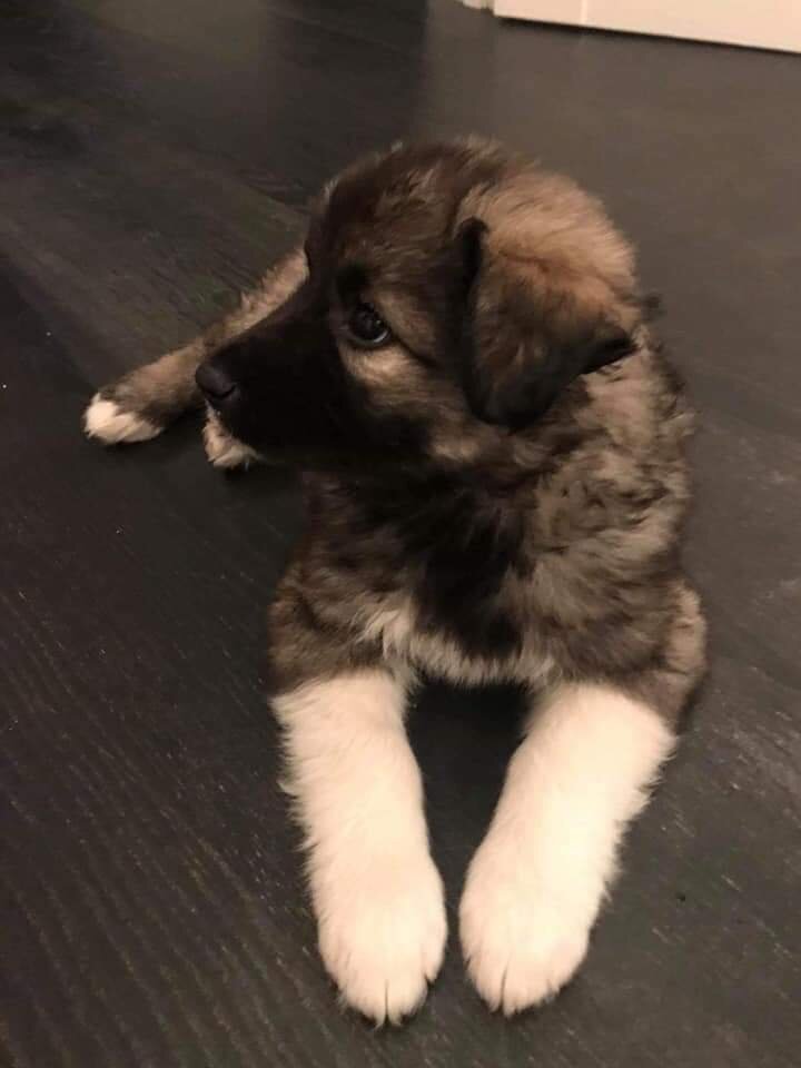 Друзья, две недели назад забрали с обочины Новой Риги трех месячных беспородных щенков, которые вылезали под колеса грузовиков. Двух уже удалось пристроить, а одна девочка, самая умненькая, пока еще у меня.