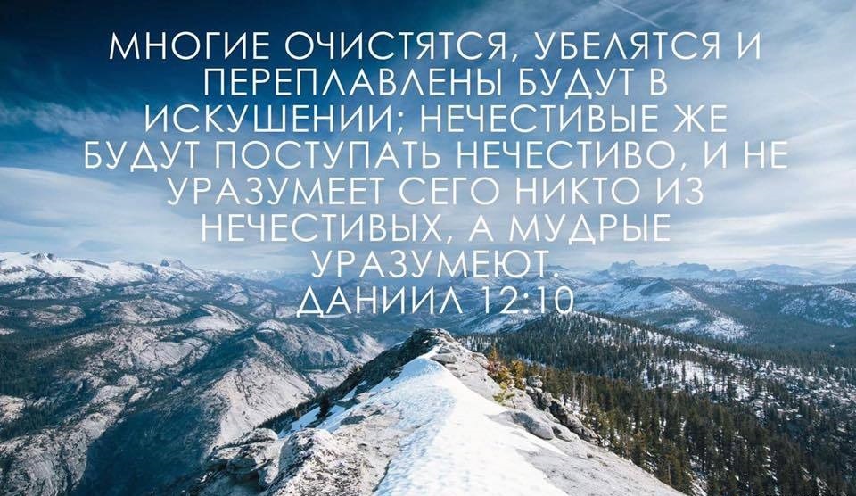“Многие очистятся, убедятся и переплавлены будут в искушении; нечестивые же будут поступать нечестиво, и не уразумеет этого никто из нечестивых, а мудрые уразумеют. Со времени прекращения ежедневной жертвы и поставления мерзости запустения пройдет тысяча двести девяносто дней”.