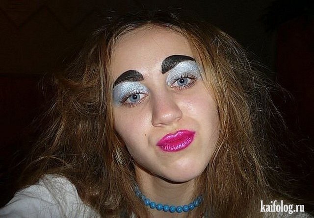 Как цвет очень красивый и не вышел из моды. Но сука Голубые тени просто верх безвкусицы особенно в сочетании с видом продавщицы с рынка! Можете сжечь меня на костре, если не согласны. Но Молю вас, никогда ими не пользуйтесь! Особенно если не владеете техникой макияжа, где можно правильно расставить акценты даже при использовании этого цвета. Если вдруг так случится, что в магазине с косметикой ваши пальцы потянуться за голубыми тенями ещё и в перемешку с перламутром. То откусите себе руку и истекайте кровью до тех пор пока не поймёте, что использование таких теней как основной тон на веко, просто не возможно. Так как с потрахами выдаёт ваш отвратительный вкус. А может и вообще его полное отсутствие.