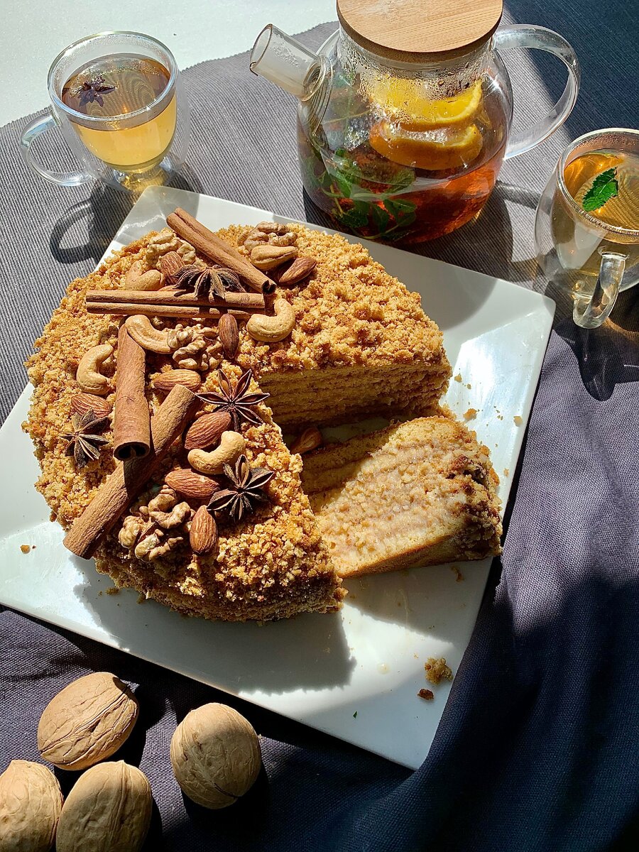 Лучший рецепт медовика из всех, которые я пробовала: вкусные медовые коржи, отличный крем, достаточно влажная, "сочная" текстура десерта. Просто не оторваться, сегодня уже четыре раза пили чай ))) Нам понадобится: