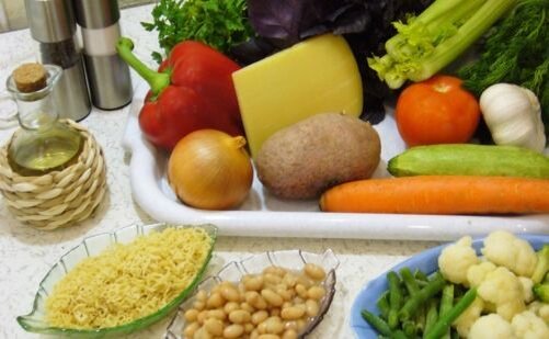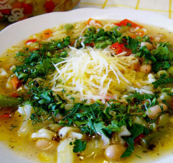 Если вас спросят, какое самое популярное блюдо в Италии, то большинство ответит что: паста или пицца. Но это не так! Самое любимое блюдо итальянцев, особенно летом минестроне – суп из овощей. Особенностью этого блюда является то, что это блюдо сезонное, и какие овощи есть в холодильники, такие обычно и добавляют. При этом количество овощей в супе должно быть около 10, иначе это не минестроне. Поэтому правильного или точного рецепта нет, так как, сколько в Италии поваров столько и рецептов супа. Ну а мы с вами познакомимся с классическим рецептом минестроне. Ингредиенты: 😟 Не подходят? Подберите другой рецепт в категории «Куриные супы»! 😉 Рецепт: Шаг 1: Подготовим овощи. Так как у меня был заготовленный заранее куриный бульон, то теперь мне необходимо было промыть все овощи и нарезать их на мелкие кусочки. При этом помидоры необходимо облить кипятком и снять кожицу, и лишь потом порезать на кусочки. Картофель лучше резать кубиками размером 2х2 см. А перец болгарский необходимо з