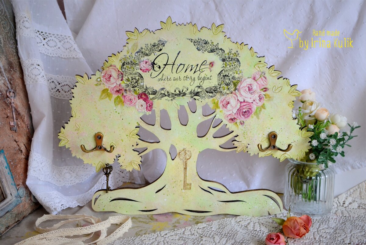 Доброго времени суток, дорогие декупажницы! Этот мастер-класс посвящен такой полезной и домашней вещи, как ключница. Именно такие интерьерные мелочи придают жилищу характер и уют. Для декора я взяла заготовку «дерево» т.к. дерево это символ семьи. Итак, для работы нам понадобится: