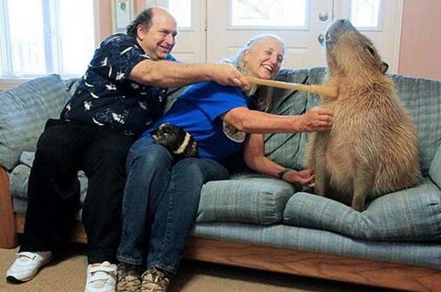 Когда представляешь себе в качестве домашнего питомца грызуна , первым, что приходит на ум – это какой-то крысенок, хомячок, или, на крайний случай морская свинка, но уж никак не 70 килограммовый рекордсмен Книги Рекордов Гиннеса. Домашний любимец Также этот милый грызун легко может найти общий язык с другими домашними животными и даже завязать с ними дружбу. Особенности содержания Основу их рациона составляет трава и водоросли, также можно добавлять гранулированный корм с необходимыми добавками. Самый крупный в мире грызун отличается также лучшими способностями к обучению. Капибара выполняют различные команды, а также, при регулярных занятиях, могут даже усвоить цирковые трюки. Естественная среда обитания Эти дружелюбные животные, которых часто называют «движущимися стульями», никогда не проигнорируют просьбу о совместном путешествии от другого животного. Птицы, обезьянки и кролики были неоднократно замечены сидящими или лежащими на спине очень добродушных капибар.