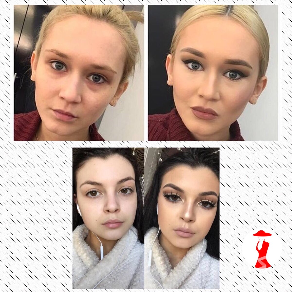 На следующих фото девушек не только накрасили, но ещё изменили стрижку и цвет волос. Сейчас есть уйма приложений, где можно "примерить" цвет волос и определиться с нужным оттенком.