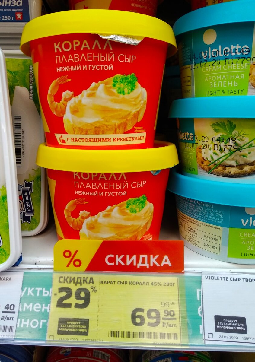 Доброго времени суток, сегодня за долгое время карантина я побывала в Магните, расскажу, что я купила там. Сыр Карат Коралл плавленный, такой я вижу впервые, решила попробовать, за 69 рублей- очень даже неплохо Мы с мужем очень любим морских "тварей", но цена на них кусачая, а тут скидка хорошая и объем банки 430 г, все равно дороговато конечно, но иногда можно себя побаловать Опять для меня новинка: масло подсолнечное с добавлением льняного, не знаю какое там соотношение, наверняка как с оливковым: грамм да маленько, но за такую цену можно и "маленько" А вот большой объем банки кофе- 190 г за 269 рублей- тоже очень выгодно и кофе этот очень даже ничего, точно выгодная цена А вот этот вид Нескафе мне не понравился: какой-то привкус непривычный,я всё-таки консерватор , а муж пьёт именно этот, так что берём ему, может и вам понравится А это конфетки для старшей дочери, иногда надо баловать детей, дорогие конечно, поэтому и иногда, но эти она хоть кушает с удовольствием, а вот Киндера с