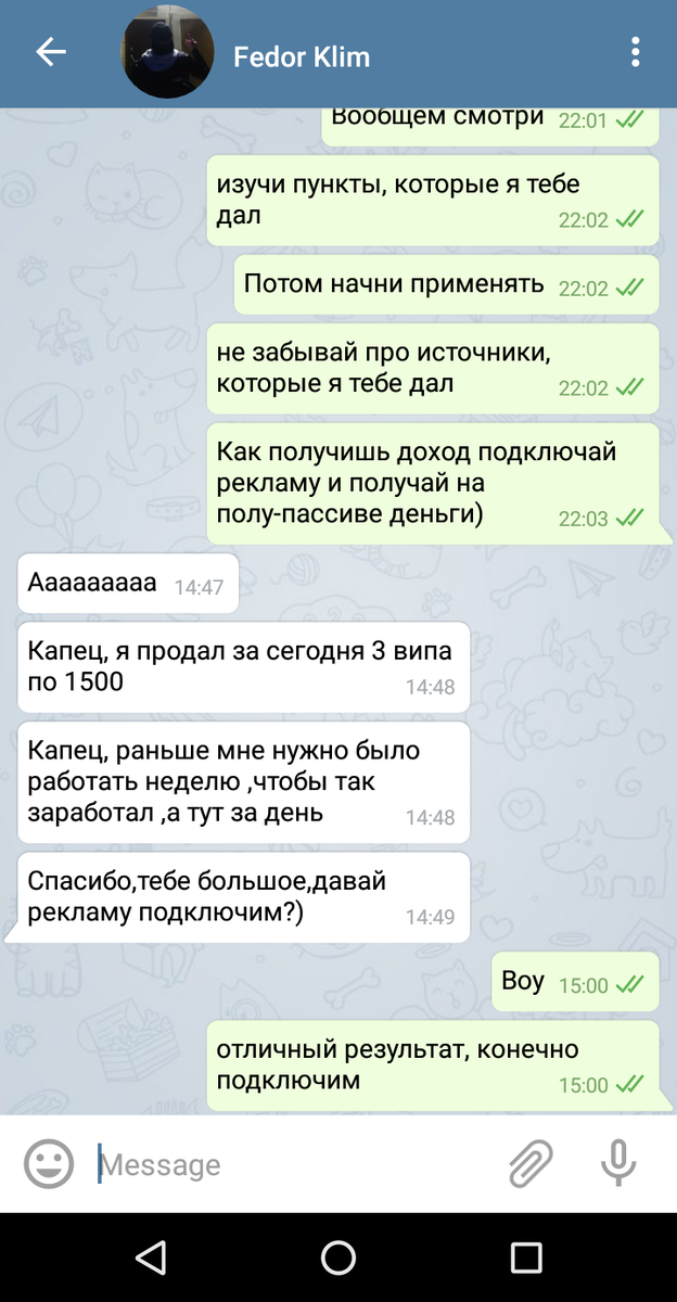 Но я хочу вам рассказать про моего подписчика, который присоединился ещё с первого поста про данный вид заработка и уже на 2 день сделал 3 продажи по 1500 рублей!
