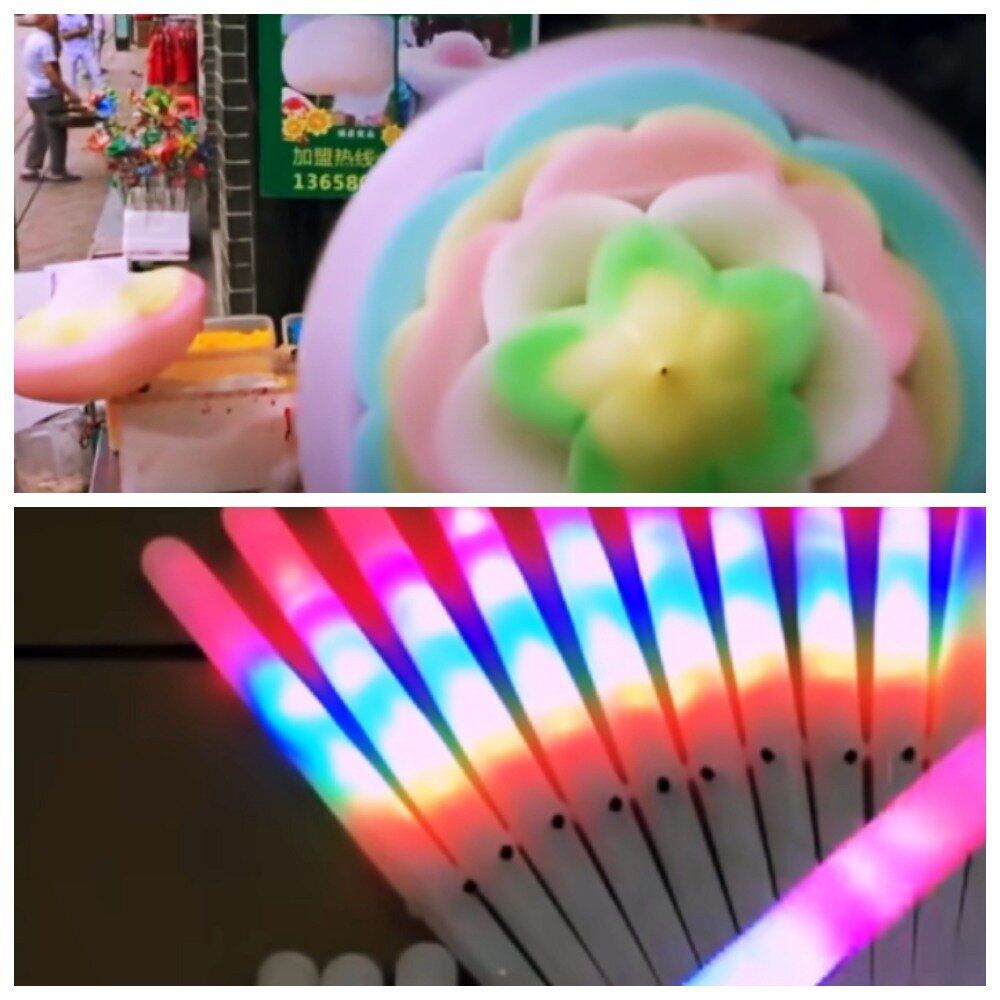 Светящаяся сладкая вата. Сладкая вата всегда была доходным сезонным бизнесом. Новичку, желающему на этом заработать, было практически не реально найти свободное место там, где ходит много народа. Парки, набережные, ярмарки. Всё было забито под завязку теми, кто не хотел упускать прибыльный бизнес с невероятно высокой рентабельностью. Тогда хитрые новички стали придумывать то, что поможет им привлечь к себе внимание. Так стали появляться новые виды сладкой ваты. Мало того, что они стали разноцветные, появилась сладкая вата различных форм. Конкуренция рождает прогресс и на формах предприниматели-изобретатели не стали останавливаться. Так что в скором времени в многочисленных парках нашей страны мы увидим сладкую вату, которая светится. На самом деле в такой вате светится не сама вата, а полочки со светодиодами, но это отменный трюк, который выполняет свою функцию, привлекает внимание посетителей. Более того, купивших ожидает ещё и сюрприз. Это палочки можно использовать в качестве игруш