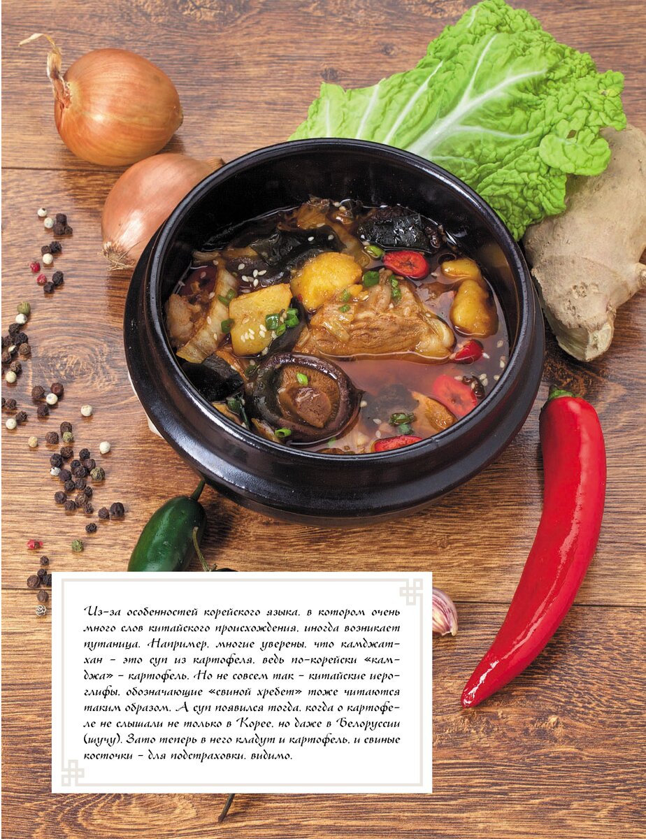 СУП ИЗ СВИНЫХ КОСТЕЙ С КАРТОФЕЛЕМ Простой и сытный корейский суп. Если в доме есть свиные косточки с толикой мяса и пара картофелин, то можно приступать к приготовлению. Традиционно готовится из свиного позвоночника, разрубленного на несколько частей, но мы можем взять ребрышки, срезав с них излишки мяса (пригодятся для других блюд). 1. Сразу скажу – мне совсем не нравится, как корейцы поступают с мясом в этом супе, но отступать от рецепта не буду. Дело в том, что многие корейцы считают «пириннэ», т. е. «животный» запах мяса или рыбы, крайне неприятен. Особенно у свинины. От этого и столь сложные манипуляции в рецептах: долгое вымачивание мяса, промывание его после закипания, ароматизация имбирем и даже растворимым кофе. Крепкий бульон для корейских супов, как уже говорилось, не нужен, но вымачивать ребра несколько часов в воде я не стала. Если желаете строго следовать рецептуре, залейте косточки водой на 2–3 часа, несколько раз меняя воду. 2. Свиные ребра складываем в кастрюлю, туда