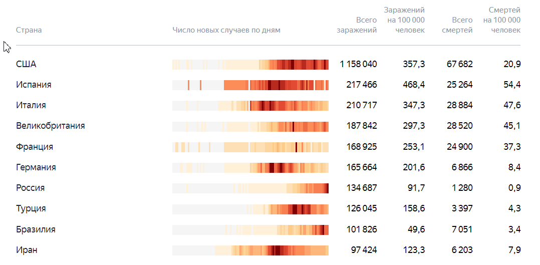 Добрый день дорогие читатели Если задуматься о распространении коронавирусной инфекции то согласно статистике на вех нами знакомых сайтах, вы увидите какой прирост заболевших каждый день имеет каждая из этих стран , в этих списках далеко не все люди которые успели подхватить заболевание. Согласно этим статистикам можно так же оценить общий ущерб нанесенный каждой стране и можно выявить заинтересованные в этом страны. Напоминаю число заразившихся людей в мире достигло 3002303 человека , количество летальных исходов возросло до 208131. Первая по числу заболевших в мире это США. В стране насчитывают около 1180634 заболевших , да некоторым из них удалось выздороветь но порядка 5% заболевших закончили летальным исходом. Остались без работы миллионы человек. Во всех штатах введен карантин в некоторых из них запрещена продажа мяса в связи с распространением инфекции. По словам президента такое количество больных связано с хорошей системой тестов. Но Статистика говорит об обратном если взя