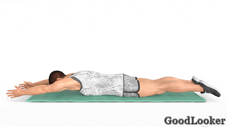 Лягте на живот, руки вытянуты вперед над головой. Поднимите одновременно правую руку и левую ногу максимально вверх, отрывая грудь и бедро от пола. Почувствуйте напряжение в мышцах пресса и поясничных мышцах. Вернитесь в исходное положение и поднимите аналогичным образом левую руку и правую ногу вверх. Это упражнение не только поможет вам убрать живот, но и улучшить осанку и избавиться от болей в пояснице.