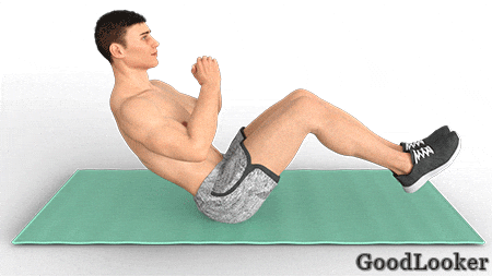 Сядьте на коврик, согните ноги в коленях. Отклоните спину немного назад так, чтобы между спиной и ковриком был угол примерно 45 градусов. Руки сложите ладонями вместе возле груди. Оторвите ноги от пола. Между корпусом и бедрами образуется прямой угол. В этом положении начните поворачивать корпус в стороны, задействуя мышцы пресса и стараясь коснуться локтями пола. Чтобы упростить это упражнение для живота, опустите стопы на пол.