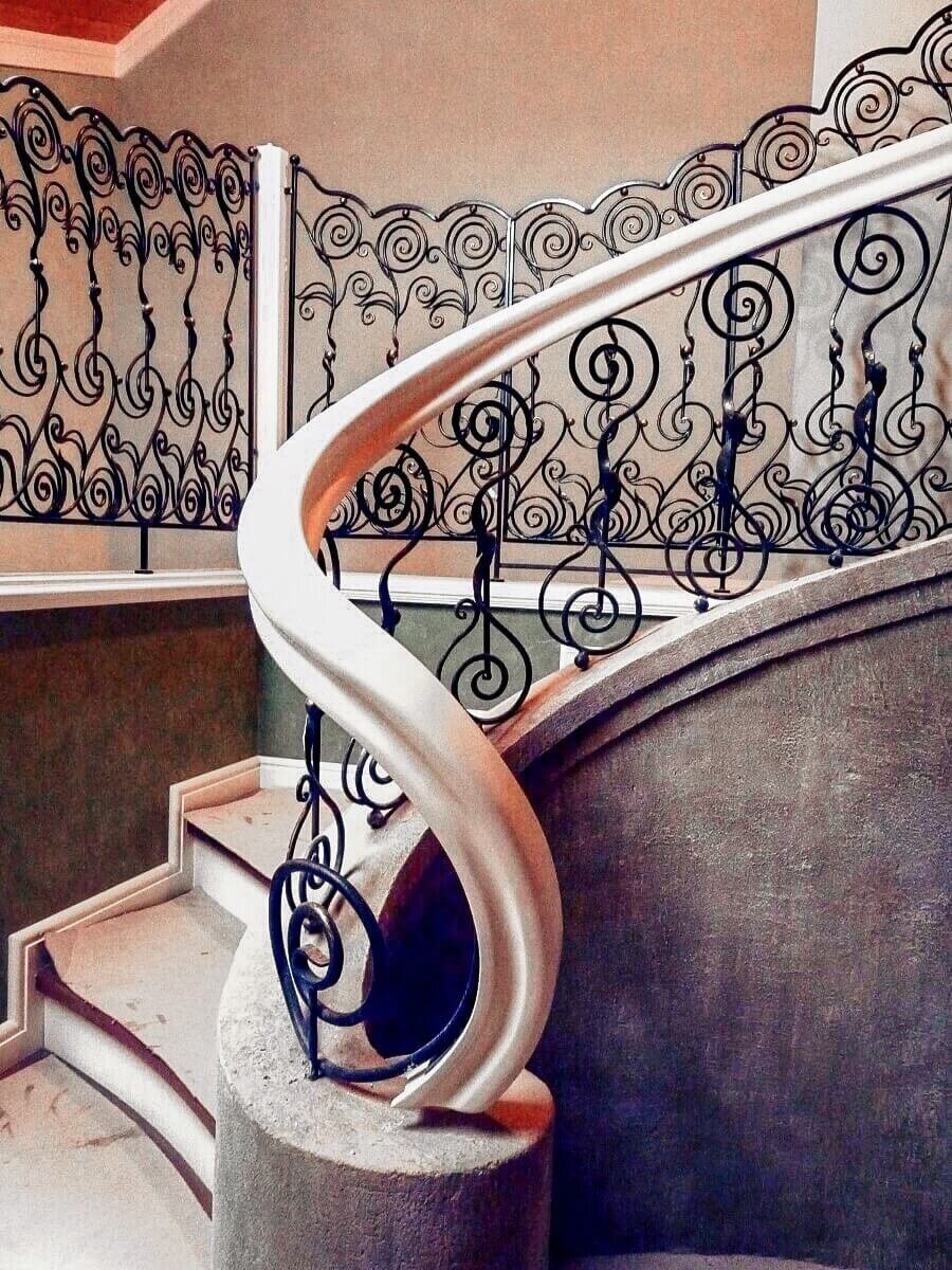 Правильный дизайн лестничных поручней подобрать достаточно трудно, ведь он должен точно соответствовать особенностям интерьера. Художественная ковка металла позволяет создавать функциональные и красивые, прочные и долговечные конструкции. Рассмотрим различные варианты изделий, которые можно установить у себя дома. Разновидности ковки Если знать об особенностях изготовления ограждений для лестниц, можно сэкономить время для выбора и не тратить лишние средства. Детальнее можно прочесть здесь (ссылка на Википедию). Как правило, предлагают два типа ковки: Определяемся со стилем Мы подобрали характеристики наиболее популярных и востребованных стилистических направлений для оформления дома и квартиры: Наружная поверхность изделий из металла бывает разной. В частности, применяется вороненое и патинированное покрытие. Первый вариант выглядит как имитация старины (патины) и обладает теплым оттенком. Второй тип смотрится черным или серо-стальным. Наличие такого дополнения делает кованые предметы