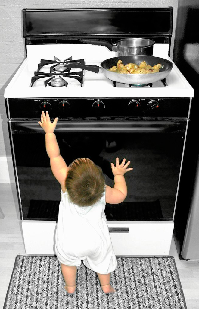 Я что-то готовила в кастрюле, поставленной на плиту. Ее ручка торчала за край плиты. Малыш подошел ко мне. Тогда я поняла, что достаточно моего неосторожного поворота, и кастрюля может упасть на ребенка. Я всегда буду ставить эту кастрюлю так, чтобы ее ручка была обращена к центру плиты.