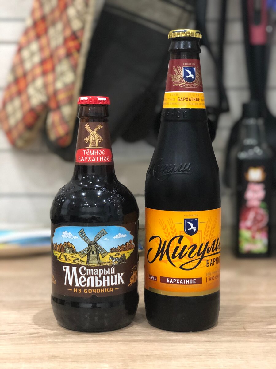 Намедни приглянулось в Магните темное пиво от AB InBev Старый Мельник из Бочонка Бархатное, симпатичная бутылочка в духи этих самых "бочонков", которые стоят практически в каждом магазине. Там же рядом по соседству стояли Жигули Барное Бархатное от МПК, ценник у них был практически одинаковый, поэтому было решено сравнить их между собой.