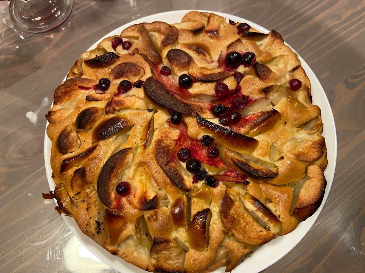 Ингредиенты: Яблоко — 4-5 Штук Яйцо — 4 Штуки Мука — 1 Стакан Сахар — 1 Стакан Разрыхлитель — 0,5 Чайных ложки Сливочное масло — 30 Грамм Ягоды для украшения Сахарная пудра для украшения В глубокой миске взбить яйца с сахаром. В массу просеять муку с разрыхлителем через сито. Хорошо перемешать тесто. Очищенное яблоко без сердцевины нарезать произвольно, а потом добавить в тесто. Форму для выпечки смазать маслом. Влить в неё тесто. Запекать шарлотку при 180 градусах в течение 40-50 минут.После украсить шарлотку ягодами и посыпать сахарной пудрой. Приятного чаепития!