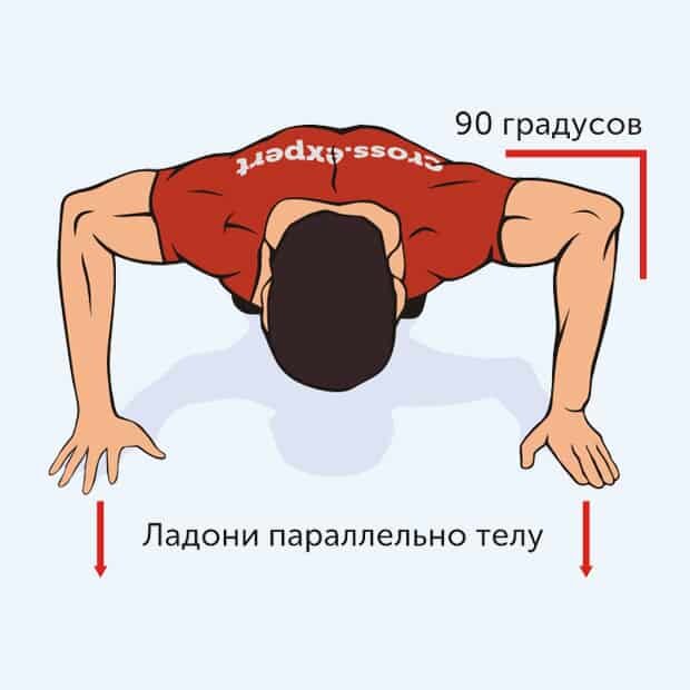 Это упражнение часто называют «жимом лежа наоборот» – биомеханика движений практически идентична, поэтому в рамках домашнего тренинга классические отжимания будут базовыми.