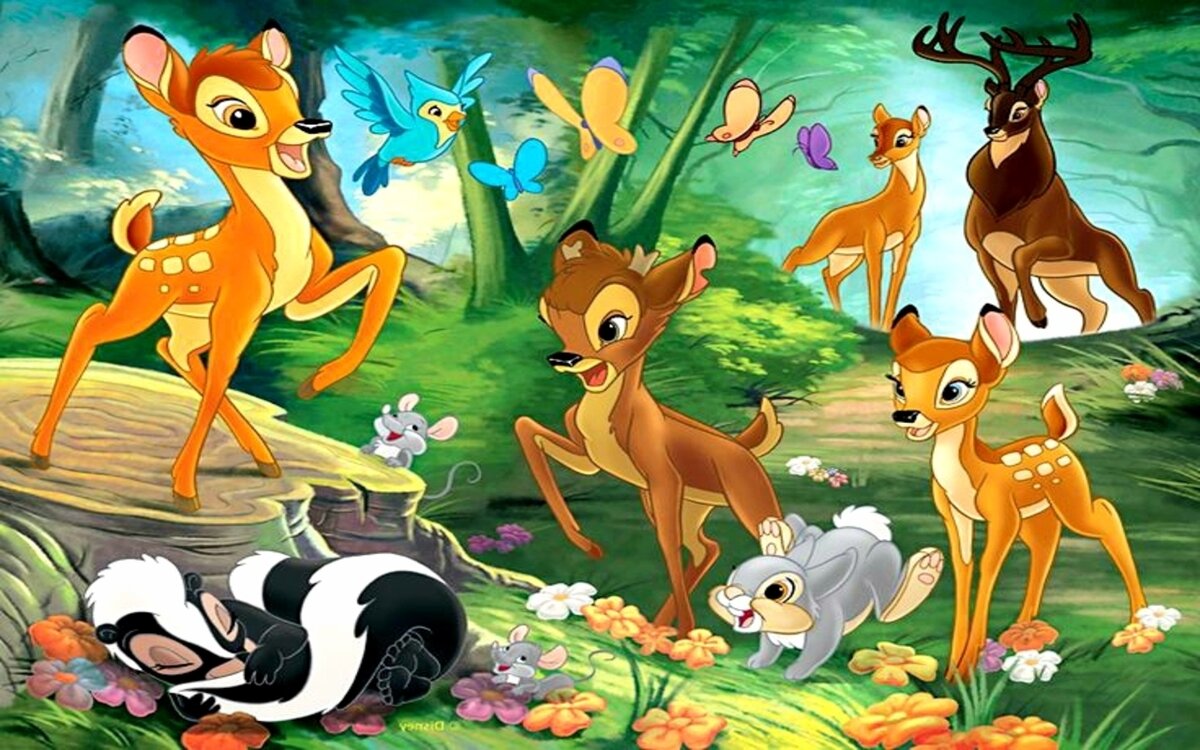 Я не перестаю восхищаться мультфильмами советского периода. И не я одна. Но недавно я задалась вопросом: а как у "них", т.е. есть ли зарубежные мульты, которые находятся на одном уровне с нашими. Я не хочу вспоминать о современных, создаваемых в период расцвета компьютерных технологий и преподносимых рекламой, как ФИЛЬМЫ, именно так, с большой буквы. Но трогуют ли они за душу, смеёмся и плачем ли вместе с их героями или больше пытаемся найти ляпов и оценить работу компьютерщиков? Запоминаем ли героев и название "творений" или, выйдя из зала, через день, другой, уже с трудом вспоминаем суть истории? Поэтому я провела небольшое, если можно так сказать, "исследование" и да, и у них есть не тупые "стрелялки-догонялки", а замечательные произведения. Вот те, которые я вспомнила: 1. Бэмби. Фильм снят студией Уолта Диснея в 1942 году. Это знают многие. А знаете ли вы, что на премьере он провалился и только с 1947 года начал набирать популярность и вскоре стал культовым. При создании мультф