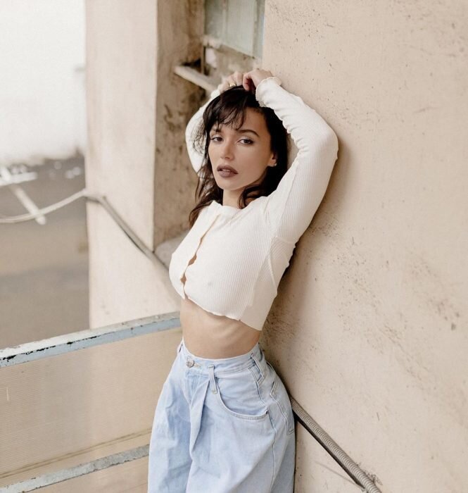 Ольга Серябкина, более известная под псевдонимом Molly, относится к моде как к веселой игре. В жизни и на сцене певица абсолютно не стесняется появляться в откровенных нарядах и примерять на себя самые спорные тренды. Чего только стоит пестрая «банная» шуба от Balenciaga! Помимо занятий вокалом Ольга пишет стихи и ведет личный блог в Яндекс. Дзен, где высказывает мысли на самые актуальные темы. Вот и теперь певица поделилась в Инстаграм публикацией, в которой посоветовала подписчикам прочитать одну из своих статей. Но и стильным нарядом, конечно, похвастаться не забыла, а заодно и осиной талией. Ольга решила соединить в своем образе сразу несколько последних трендов сезона. Певица надела тонкий укороченный топ с длинными рукавами в рубчик, который напоминает мини-кардиган, без какого-либо нижнего слоя и даже без белья. Модный прием, конечно, выглядит более чем пикантно, однако нежный молочный цвет трикотажа и романтичные рюши на рукавах сглаживают излишнюю откровенность. При этом шир
