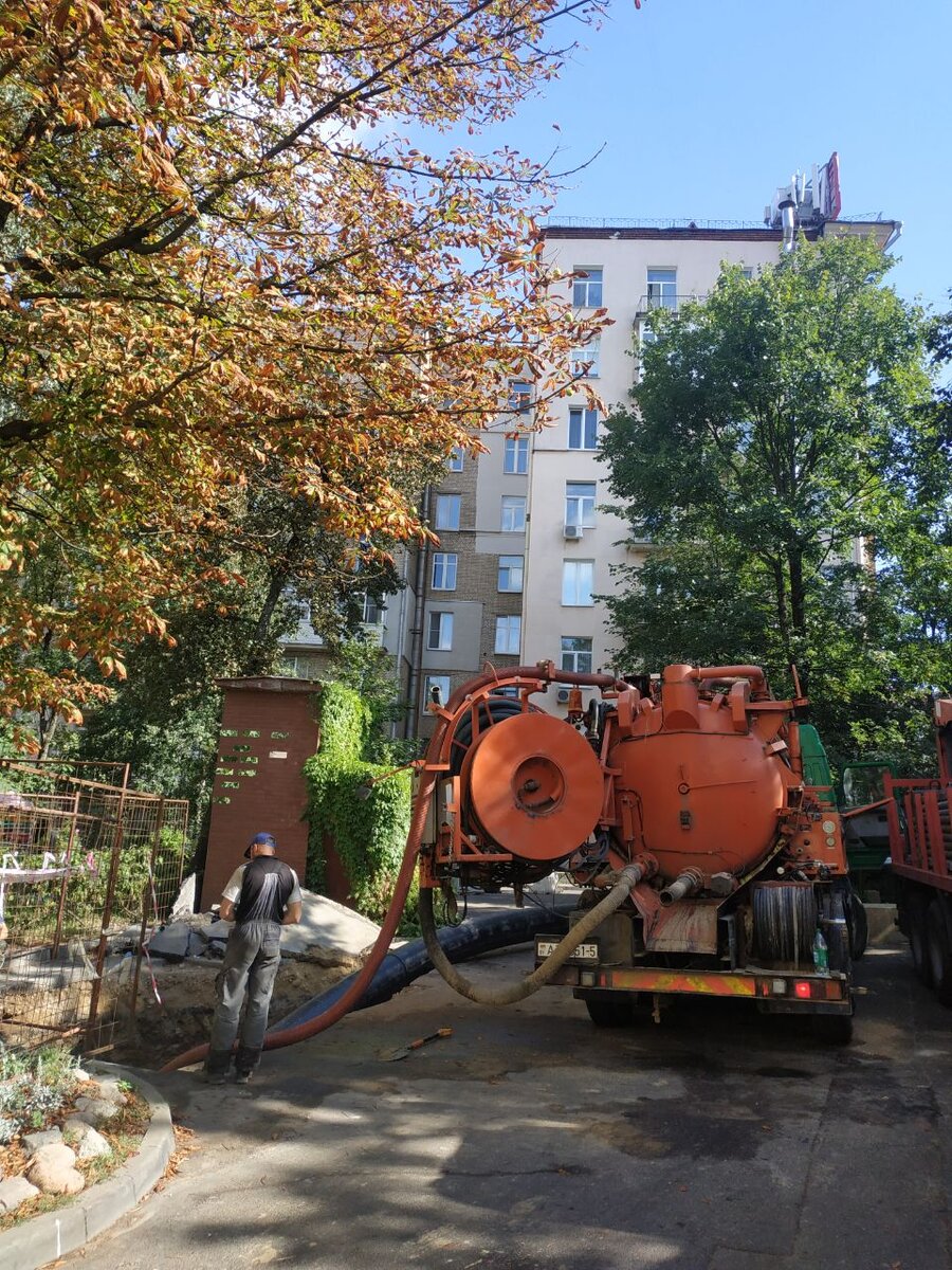 Старая канализация очень часто выходит из строя потому что: ● в трубе случаются частые засоры ● корни прорастают сквозь стыки ● стенки труб трескаются эксплуатация канализационный сети превращается в кошмар для инженерных служб. После определённого срока и приходиться менять трубопроводы канализации. Примерно так произошло в микрорайоне Великий Лес в Минске по улице Гуртьева. Происходила масштабная замена канализационных труб. На этапе земляных работ пошел сильный ливень и затопил огромный котлован. Из-за того, что труба имела множественные проломы – вода начала утекать в трубу канализации и песок, который обрушался вместе с ливнями, засорил трубопровод диаметром 500 миллиметров. Много кварталов жилых домов остались без удобства канализации. Устранить засор и восстановить пропускную способность трубопровода с помощью гидродинамической машины заняло 4 часа непрерывной работы. За это время мы промыли с помощью высокого давления 120 метров 500 мм. Из-за того, что дворик был очень