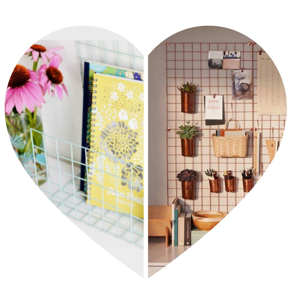 Особенно подойдёт такой способ организации мелочей, если ваш дом не такой большой, или например вы арендуете жилье временно. Но и в шкафу такая вещь поможет привести в порядок ваши шарфы, пояса или сумки. Вариантов сеток очень много, они есть тонкие, и есть торговые, которые отличаются прочностью прута. Для гаража такая сетка подойдёт идеально для хранения инструментов, и нужных или не очень вещей.