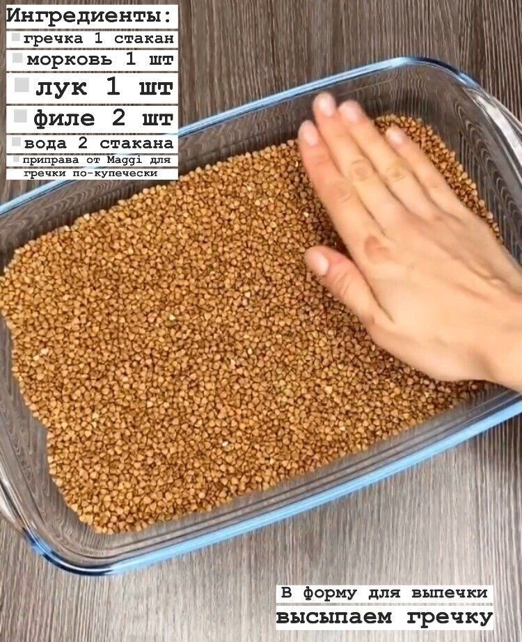 - как вариант - зажарка из лука и моркови Я для себя выбрала вариант с зажаркой. Дальше выкладываем слой филе. Ну, или не филе. Это уже кому как нравится. Можно даже взять мясо, которое обычно на шашлык берёте, замариновать, только нарезать мельче, чтоб пропеклось хорошо. В оригинальном рецепте была приправа Maggi для гречки по куп
