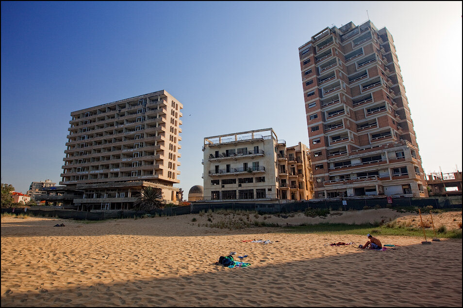 20 июля 1974 года, воспользовавшись беспорядками в Греции и на самом Кипре, турецкая армия вторглась на остров. Началась короткая, но кровопролитная война. Турки, незадолго до появления "голубых касок" и подписания перемирия, успели захватить город Фамагусту с расположенным в нем элитным кварталом под названием Вароша. Еще недавно люксовые номера отелей Вароши резервировались европейцами на 20 лет вперед. Тысячи людей загорали на белопесочных пляжах. Сюда в свое время приезжали отдохнуть от суеты Элизабет Тейлор, Ричард Бартон, Ракель Уэлч и Брижит Бардо. Но с августа 1974 года вход туристам на территорию Вароши запрещен - квартал окружен колючей проволокой и патрулируется турецкими военными. Изгнание местных жителей из Вароши происходило молниеносно. По требованию захватчиков, люди должны были покинуть свои дома за 24 часа, имея с собой лишь ручную кладь. Этот безжалостный приказ привел к тому, что брошено было все: белье, привязанные к будкам собаки, мебель, книги, личные вещи. В нек