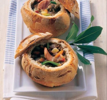 В Чехии подавать к столу суп в хлебе - обычное дело. А вот у нас это диковинное блюдо гарантированно удивит гостей. Несмотря на его эффектное оформление, блюдо очень простое в приготовлении, ведь чехи большие гурманы и не любят вычурности. И вместе с тем это блюдо обладает насыщенным ароматным вкусом. Практически любой суп можно сделать в хлебе, главное, чтобы это был густой суп или суп-пюре. А это оставляет большое поле для экспериментов! Итак, готовим чешский суп в хлебе.
