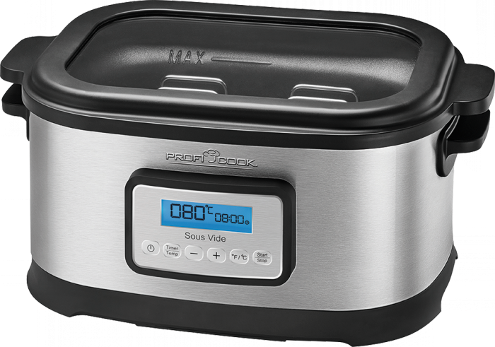 Тут некоторые товарищи интересовались - что такое су-вид, о котором я писал в нескольких рецептах. Это такой способ приготовления еды (от французского sous-vide, «под вакуумом»), который уже довольно давно применяется в ресторанах, но в домашних условиях пока не особо распространён, ибо агрегаты для этого дела имели безобразный ценник в 20-30 тысяч рублей (профессиональные модели и того больше). Однако, некоторое время назад на нашем рынке появилась немецкая модель (собранная в Китае, естественно) ProfiCook PC-SV 1112. Стоит этот аппарат уже приемлемо — от 8 до 12 тысяч, в зависимости от жадности продавца. Но, как все, наверное, знают, китайцев, производящих какую-то продукцию по заказу какой-то компании, всегда можно попросить на эту самую продукцию лепить шильдик и какой-нибудь другой компании, что, судя по всему, и сделала отечественная контора Kitfort. Так что на нашем рынке появилась точная копия немецкого агрегата, но с «отечественным» происхождением — Kitfort KT-2021. Ценник у э