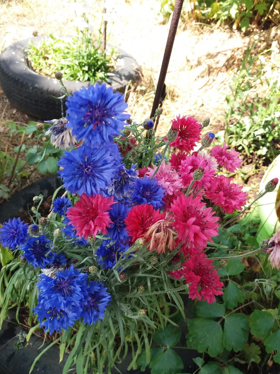 В ромашковом поле, в лесу, у реки, Как капельки неба цветут васильки, На белом и чистом, невинном ковре Вновь синим огнём полыхнут на заре. Простой, очень скромный, яркий цветок, К просторам России привык василек, Люблю его синий ажурный наряд, Что нам до зимы цветом радует взгляд. Сплету из ромашек красивый венок, В него я вплету и цветок василек, Пусть синие брызги коснутся реки, Пусть радость подарят душе васильки! (автор Ю. Головань)