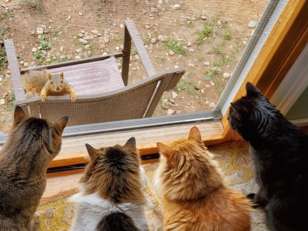 Белка и четыре кота Практически все коты любят окна. Даже коты, которые гуляют на улице. Что же их больше интересует? Исследования показали, что кошки больше любят наблюдать за птицами, мелкой живностью и листвой. Вот такой меховой воротник Я ответственно выполняю свою работу Неопознанный летающий кот (Не фотошоп, секрет левитации - москитная сетка) Аппетитные голяшки Ух ты - ложечка! Это мой диван Да не было здесь никакого арбуза... Милашки