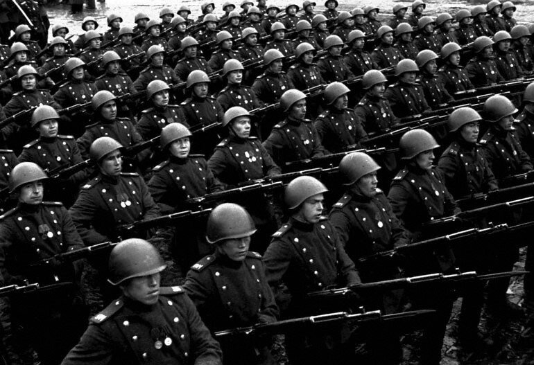 Однажды мой дедушка высказал пронзительную и страшную мысль: "В главном параде в честь Дня Победы 24 июня 1945 года участвовало десять тысяч солдат и офицеров армий и фронтов. Прохождение парадных "коробок" войск продолжалось тридцать минут. И знаешь, о чём я подумал? За четыре года войны потери нашей армии составили почти девять миллионов убитых. И каждый из них, отдавших Победе самое драгоценное — жизнь! — достоин того, чтобы пройти в том парадном строю по Красной площади. Так вот, если всех погибших поставить в парадный строй, то эти "коробки" шли бы через Красную площадь девятнадцать суток..." И я вдруг, как наяву, представил этот парад. Парадные "коробки" двадцать на десять. Сто двадцать шагов в минуту. В обмотках и сапогах, шинелях, "комбезах" и телогрейках, в пилотках, ушанках, "будёновках", касках, бескозырках, фуражках. И девятнадцать дней и ночей через Красную площадь шёл бы этот непрерывный поток павших батальонов, полков, дивизий. Парад героев, парад победителей. Задумай