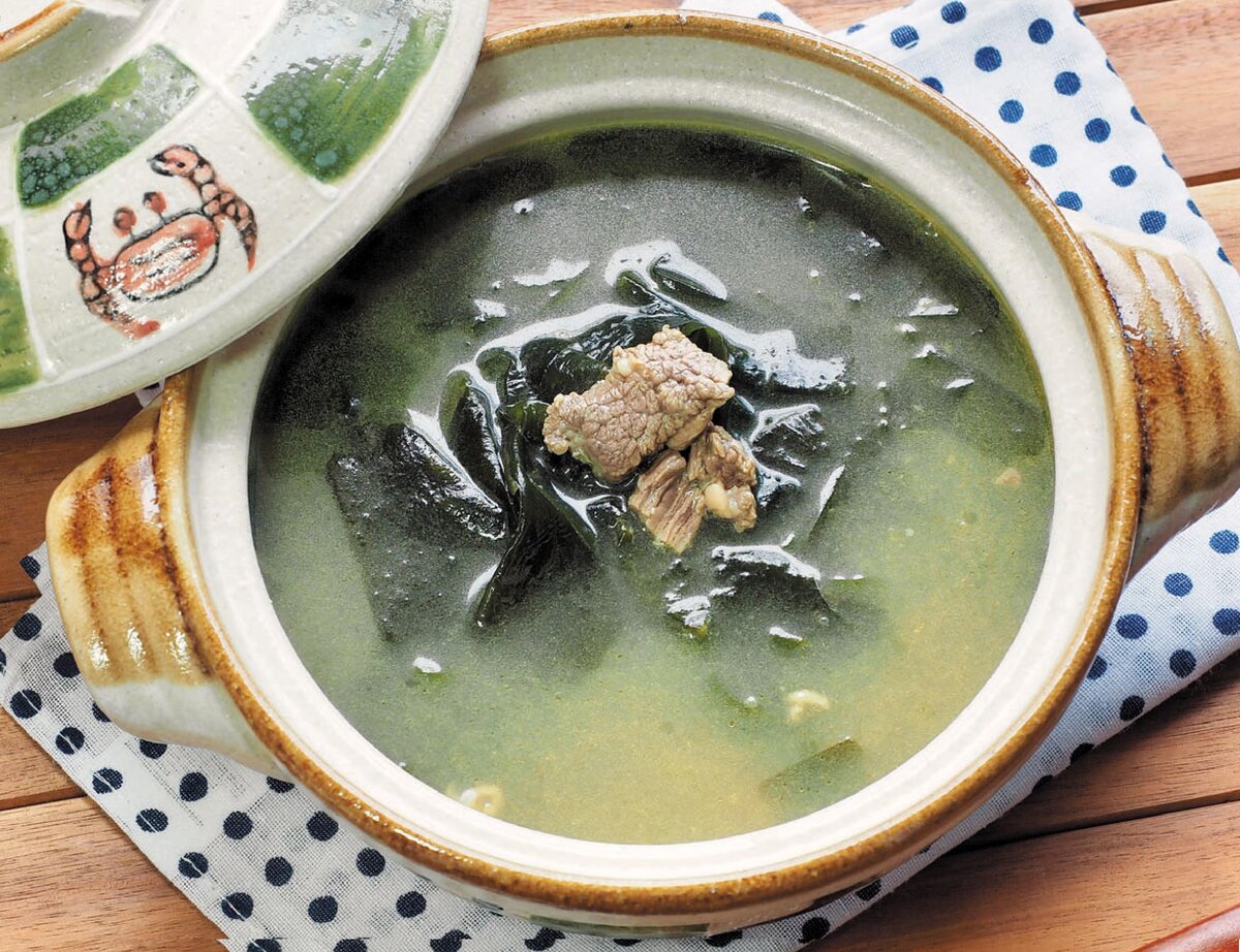 Употребление в пищу бурых водорослей – очень старая корейская традиция, уже более тысячи лет назад медицинские трактаты описывали пользу «миёк». По легенде люди наблюдали, как морские животные ели эти водоросли и избавлялись от болезней. Именно поэтому суп из миёк – первое, что давали родившей женщине для укрепления сил (только без перца и чеснока, разумеется, да и чаще варили его на воде). Также считается обязательным поесть миёк-кук в день рождения – так вы окажете уважение своей матери и привлечете удачу на весь следующий год. В общем, обязательно нужно научиться готовить этот суп! В кухне советских корейцев, проживавших на Дальнем Востоке, миёк-кук тоже очень популярен. Но существует несколько принципиальных отличий в рецептуре. Первое, и самое важное, – у нас используется определенный вид ламинарии, всем известный как морская капуста. В Корее же – ундария. Это бурая водоросль из того же семейства ламинариевых, хотя они довольно сильно отличаются. Чаще ундарию можно встретить в про