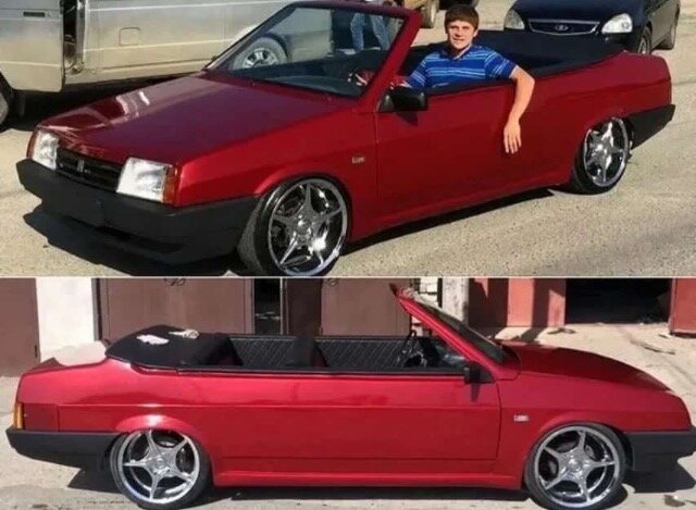 Красный кабриолет 99-й модели на улицах Махачкалы этим летом произвел фурор. И сразу же стал звездой социальных сетей. Инициаторы такого кардинального изменения – обычные дагестанские ребята. Из старого автомобиля они сделали тюнингованную красотку. И теперь, с ветерком, под восхищенные взгляды прохожих и водителей, рассекают по улицам столицы. Ловкость рук и никаких ключей. Так же легко и ловко этот красный кабриолет срывается с места. С первого взгляда и не догадаешься, что раньше это было отечественное авто 99-й модели. Еще год назад 99-ка 1999 года рождения была зеленого цвета и пылилась в гараже. Пока братья Тимур и Руслан не решили ее немного подремонтиро- вать. Ремонт постепенно превратился в тюнинг. Сначала срезали крышу, ну а дальше - пошло-поехало. Диски 17 радиуса. Музыка, колонки, черно-красный салон. И, самое главное, - полное отсутствие дверей. В эту машину просто так не сядешь. На улицах Махачкалы красному кабриолету просто нет равных. Его выезд для всех настоящий фу