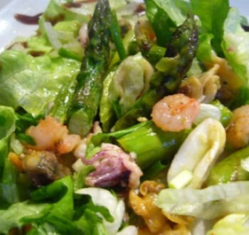 В этот раз мы с вами приготовим блюдо под названием теплый салат со спаржей и морским коктейлем. То есть, в главной роли, в нем будет выступать салат, а второстепенную роль будет исполнять морской коктейль. Блюдо исключительно вкусное, а наличие в нем морепродуктов делает его еще и полезным. Вот что нам понадобится для этого блюда: Ингредиенты: 😟 Не подходят? Подберите другой рецепт в категории «Салаты из морепродуктов»! 😉 Рецепт: Шаг 1: подготовим морской коктейль. Шаг 2: подготавливаем спаржу. Шаг 3: подготавливаем остальные ингредиенты. Шаг 4: порежем салат и приготовим заправку. Шаг 5: смешиваем салат. Шаг 6: подаем к столу. Полезное: ★ Советы, идеи и комментарии к рецепту Теплый салат со спаржей и морским коктейлем ★ Другие рецепты в категории Салаты и Салаты из морепродуктов ★ Автор рецепта: Владимир Ануфриев © 16.02.2012
