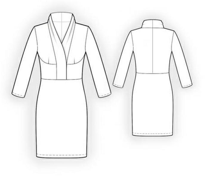 посмотреть модель на сайте Еще одно платье. Описывать модель словами можно долго, но все равно сложно понять, на что она будет похожа. Лучше несколько раз увидеть, чем один раз прочитать. Мы стараемся выложить модели на сайт как можно быстрей, и поэтому на первое время ограничиваемся техническим рисунком. Но иногда вдруг нам помогают пользователи. Только недавно мы выложили модель 5929 и вот уже нам прислали фотографию отшитой модели. Так что можно не только прочитать описание, но и увидеть это платье. Будем надеяться, что и по другим моделям мы скоро увидим фотографии. 5942 ПЛАТЬЕ С ВОРОТНИКОМ ШАЛЬКА РЕКОМЕНДАЦИИ ПО ВЫБОРУ ТКАНИ: трикотаж средней степени растяжимости из натуральных или смесовых волокон. ЕСЛИ НА ЛЕКАЛАХ ДВОЙНОЙ КОНТУР, ТО ЛЕКАЛА ДАНЫ С ПРИПУСКАМИ НА ШВЫ, ЕСЛИ КОНТУР ОДИНАРНЫЙ, ТО ЛЕКАЛА ДАНЫ БЕЗ ПРИПУСКОВ НА ШВЫ. ПРИПУСКИ НА ШВЫ: припуск по низу изделия и низу рукава – 2 см, остальные швы 1 см. ВНИМАНИЕ! ПРЕЖДЕ ВСЕГО, РАСПЕЧАТАЙТЕ БУМАЖНЫЕ ВЫКРОЙКИ И РАЗЛОЖИТЕ ИХ