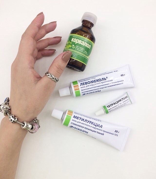 1️⃣Метилурацил: лечит наши губы👄 поможет избавится от трещин, шелушений, зуда, с корочками (обильно смазываем на ночь и утром, вмассируем в губы Быстро избавит от пятен от прыщей (следов акне) наносим точечно ватной палочкой☝🏻 2️⃣Левом еколь: если появился прыщ, смазываем точечно этой мазью на ночь и она рассасывает его, не позволяет прыщикам созревать до конечного результата Снимает покраснения и Отеки 3️⃣Тетрациклин: вытягивает на Поверхность все плохое из кожи, наносим локально сверху кусочек бинта и ждем минут 30, после удаляем. Итак два раза в день 4️⃣Корвалол Если появился герпес, ватной палочкой, смоченной в корвалоле, при герпесе, это самый быстрый способ избавиться от такой бяки. -------------------------------------------------- Давайте обобщим ко всем этим средствам с осторожностью нужно отнестись девушкам с чувствительной кожей, а Тетрациклин противопоказан беременным и кормящим🤰🏻 Все эти средства суммарно выходят не больше 200 рублей💸 Если пост был полезен ,ставь