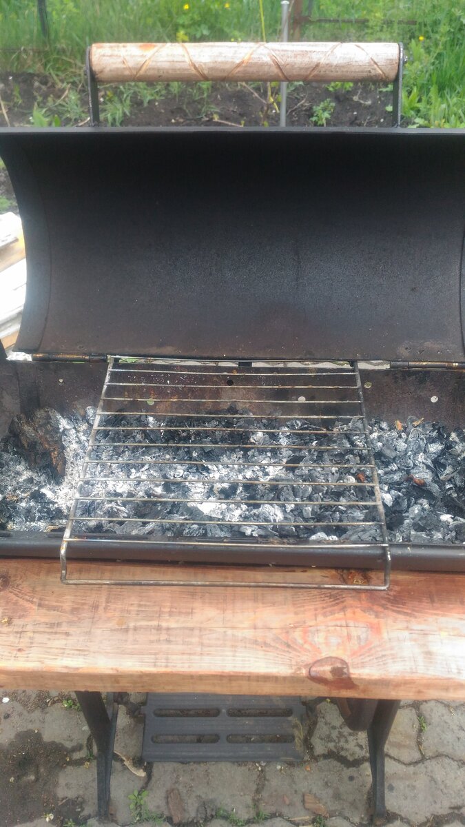 На просторах You Tube много видео с интересными решениями мангала, барбекю, коптилок и другой подобной утвари изготовленной из газо-баллоного оборудования. Насмотревшись роликов я выбрал свой вариант и приступил к работе. Моим огромный плюсом в любом начинании является проживание в частном доме, где на территории есть сарай, в котором лежит много интересного с поколения СССР. И в очередной день наведения порядка на участке я решил перебрать содержимое этого сарая. Там я нашел все необходимое: В строительном магазине я приобрел морилку для дерева - 150руб., краску для мангала -1 литр 470 руб., несколько саморезов по металлу и дверные петли для крышки мангала-45руб. за штуку. Внимание! Баллон перед тем как резать , необходимо залить водой, чтобы исключить воспламенение. Производим разметку газового баллона. Болгаркой (у меня "Интерскол") вырезаем будущею крышку мангала и отрезаем вентиль (можно оставить), не забывая при этом о средствах защиты (очки). Разбираем швейную машинку,