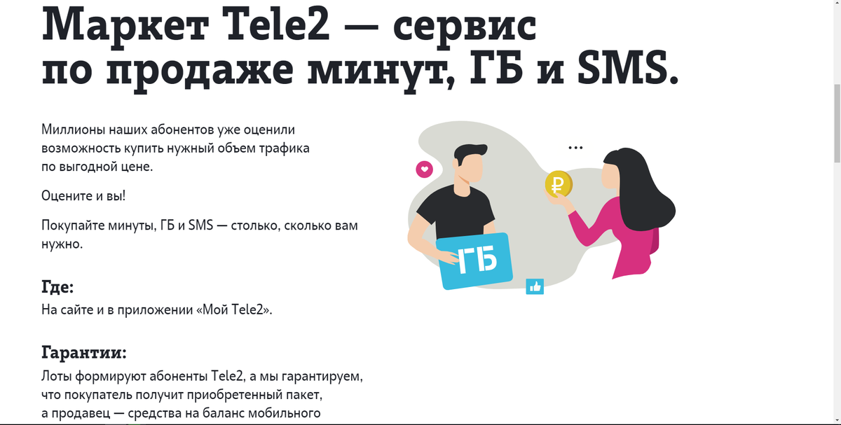 Tele2 альтернативный мобильный оператор еще в сентябре 2019 года запустил онлайн площадку где можно покупать и продавать минуты и гб. Например абонент использует тариф с абонентской платой, и в какой-то момент заканчивается интернет. Tele2 в таком случае предложит подключить пакет Ещё 500 мб за 50 рублей, или услугу добавить трафик 1 гб за 120 рублей или 5 гб за 350 рублей, согласитесь это дорогое удовольствие за 5 гб. Но биржа предлагает намного дешевле и больше гб. Как видно на бирже можно приобрести 1 гб за 15 рублей, что очень выгодно чем 500 мб за 50 рублей. Если посчитать соотношение цены услуги добавить трафик и биржы, то за 350 рублей можно купить целых 23 гб, вместо 5 гб, и таким способом за те же деньги покупаем в 3 раза больше интернета, чем то что нам предлагает услуга добавить трафик за 350 рублей А что по поводу биржи думаете вы? И не забываем подписываться на канал.