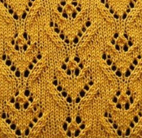 Более плотный узор выглядит классическим, на схеме только лицевые ряды. Изнаночные вяжем по рисунку.