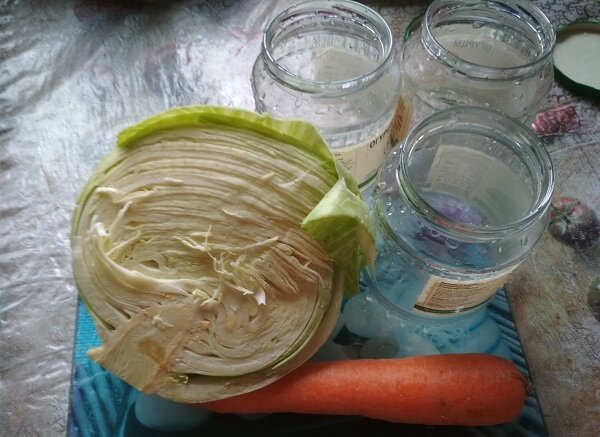 Доброго дня всем! Хочу поделиться очень вкусным рецептом маринованной капусты. Это - замечательный салатик для всех тех, кто любит вкус маринада. Хочу сказать, что делала я эту капусту несколько раз, и вкус был абсолютно разный. Все зависело от пропорций Итак, для маринованной капусты нам понадобится: капуста - полчкачана небольшого размера морковь - 1 шт вода - 1 литр соль - полстоловой ложки уксус - 2 ст. ложки сахар - 1 ч.ложка растительное масло - 2 ст.ложки Специи - по вкусу Для начала режем нашу капусту. Это самое трудоемкое из нашего рецепта. Я это делаю специальным ножом для шинковки. Морковь же трем на крупной терке. В большой емкости руками перемешиваем морковь и капусту. Не нужно слишком сильно давить. Цель - не выдавить сок, а просто перемешать ингредиенты. Затем складываем капусту в баночки - у меня получилось 3 пол-литровые банки. Сильно утрамбовывать не надо, просто немного сверху приминаем Отдельно готовим маринад. Ставим на плиту воду. Как только она закипит, добавляем