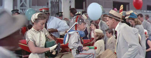 Все это подразумевает в дальнейшем развитии сюжета адюльтер – но, посмотрим! Девушка (у нее нет имени в фильме – может, это Мэрилин Монро?) наконец появляется в розовом костюмчике. Начинается непринужденный разговор