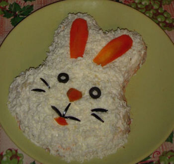 Все мы хорошо знаем и любим русские традиционные новогодние блюда такие, как: «Оливье», «Сельдь под шубой», «Заливное», «Мимоза» и многие другие. Они вроде бы и вкусные, и сытные, но уже немного скучные. Предлагаем вам немного изменить один из них, например, салат «Мимоза», причем, ингредиенты останутся те же, а новшества коснутся только оформления данного блюда. «Мимозу» превратим в красочный салат «Симпатичный кролик». Ингредиенты: 😟 Не подходят? Подберите другой рецепт в категории «Рыбные салаты»! 😉 Рецепт: Шаг 1: Овощи и яйца сварим. Шаг 2: Разминаем рыбу. Шаг 3: Выкладываем первые слои салата. Шаг 4: Измельчаем овощи и яйца и выкладываем слоями. Шаг 5: Подаем салат «Симпатичный кролик». Полезное: ★ Советы, идеи и комментарии к рецепту Салат «Симпатичный кролик» ★ Другие рецепты в категории Салаты и Рыбные салаты ★ Автор рецепта: Елена Юрьева © 21.02.2012