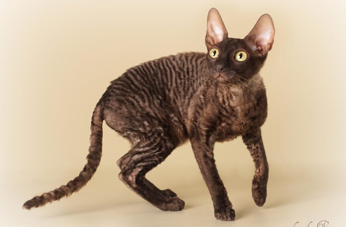 Эта порода кошек, родом из Англии в 1950-х годах, получила свое название от региона Корнуолл. Самый ранний предок корниш-рекса появился, когда генетическая мутация привела к рождению котенка с необычно вьющейся шерстью и уникальной структурой длинных конечностей, которая быстро привлекла внимание. Мать кошки была британской короткошерстной, а личность отца так и не была раскрыта.