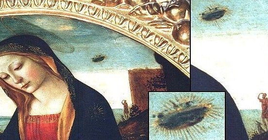 НЛО входят в состав художественной композиции относящейся к XI веку росписи, изображающей распятие Христа. Полукруглые предметы с непонятными отростками, один из которых красного, а другой белого цвета, расположены на небе под руками Иисуса.
