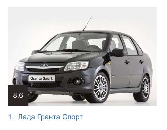 Самая лучшая ЛАДА по мнению большинства - это считается ЛАДА ГРАНТА СПОРТ . ЕЁ ХАРАКТЕРИСТИКИ: Lada Granta Sport — спортивная версия популярного отечественного седана, получившая двигатель увеличенной мощности – 1.6 литра, выдающие 106 л. ... или 114 л. с. Разгон с 0 до 100 км/ч в версии с пятиступенчатой механической коробкой передач занимает 9.5 секунды. Её цена составляет от 380.000 тысяч рублей до 460.000 тысяч рублей. ФОТО ЭТОЙ МАШИНЫ: СПАСИБО!!!