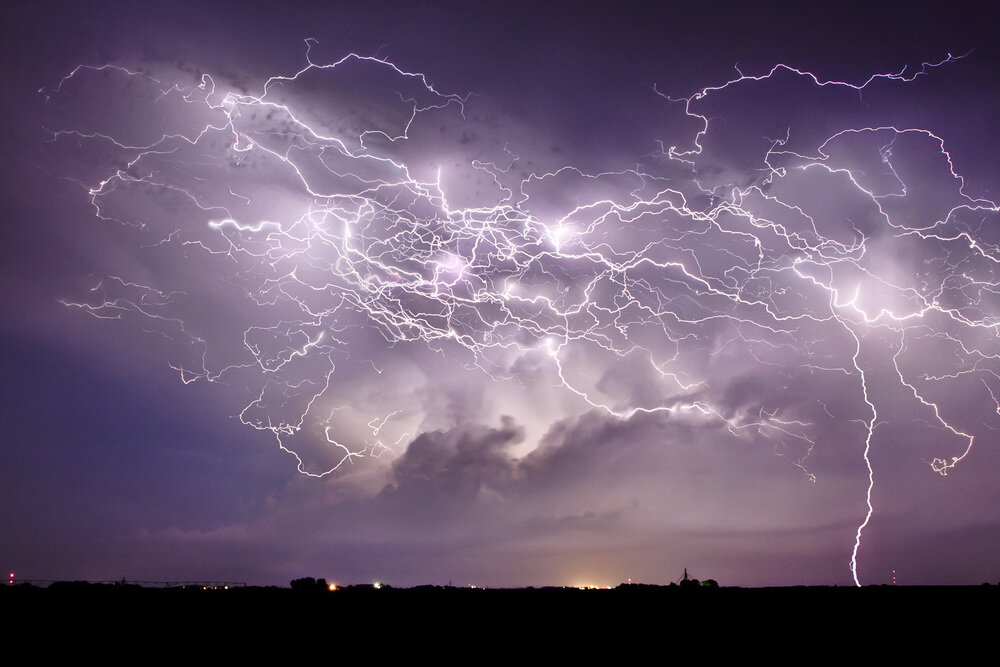 Молния - это электрический разряд, вызванный дисбалансом между грозовыми облаками и землёй, или внутри самих облаков. Большинство грозовых разрядов образуется в облаках. Молния очень горячая. Вспышка вокруг неё может нагревать воздух до 30000 °С, что в пять раз превышает температуру на поверхности Солнца. Температура внутри молнии 1600-2000 °С. Это тепло вызывает расширение и вибрацию окружающего воздуха, что создает раскатистый гром, который раздастся вскоре после того, как мы увидели вспышку молнии. Грозовые разряды от облака к земле это обычное явление. Наблюдения со спутников показали, что каждую секунду поверхности земли достигают около 10 молний. Их сила необычайна. Каждая гостья из поднебесья может нести в себе до 1 млрд вольт электричества. 75 % от общего количества молний никогда не покидают облака, а перемещаются между заряженными областями внутри облаков или между ними. Больше всего озадачивает ученых шаровая молния, которая представляет собой светящийся шар, нарушающи