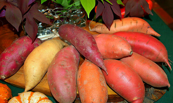 Это клубнеплодное растение семейства вьюнковые. Боковые корни растения образуют съедобные клубни весом от 200 гр. до 3-х килограммов. Мякоть овоща бывает разного цвета: белой, желтой, розовой, фиолетовой, красной. Молодые листья и побеги тоже идут в пищу. Растение имеет другие имена: подземная тыква, кумара, кумар, сладкий картофель. Но, как известно, картофель из семейства пасленовых. Родина этой пищевой культуры — Перу и Колумбия (Анды). История чудо-корнеплода исчисляется десятками тысяч лет. Предполагают, что из Америки в Испанию корнеплоды завез вездесущий Христофор Колумб. Затем из Испании овощ «пошел по рукам» европейских, азиатских и африканских стран. Батат выращивают в теплых странах, он неприхотлив, его не ест колорадский жук, который обожает картошку. Батат можно есть сырым, он напомнит вам вкус моркови. Если его запечь, он превратится в тыкву. Клубни жарят и тушат, из них готовят суп-пюре. Высушенные дольки измельчают для получения суррогата кофе. Батат полезнее картофеля.