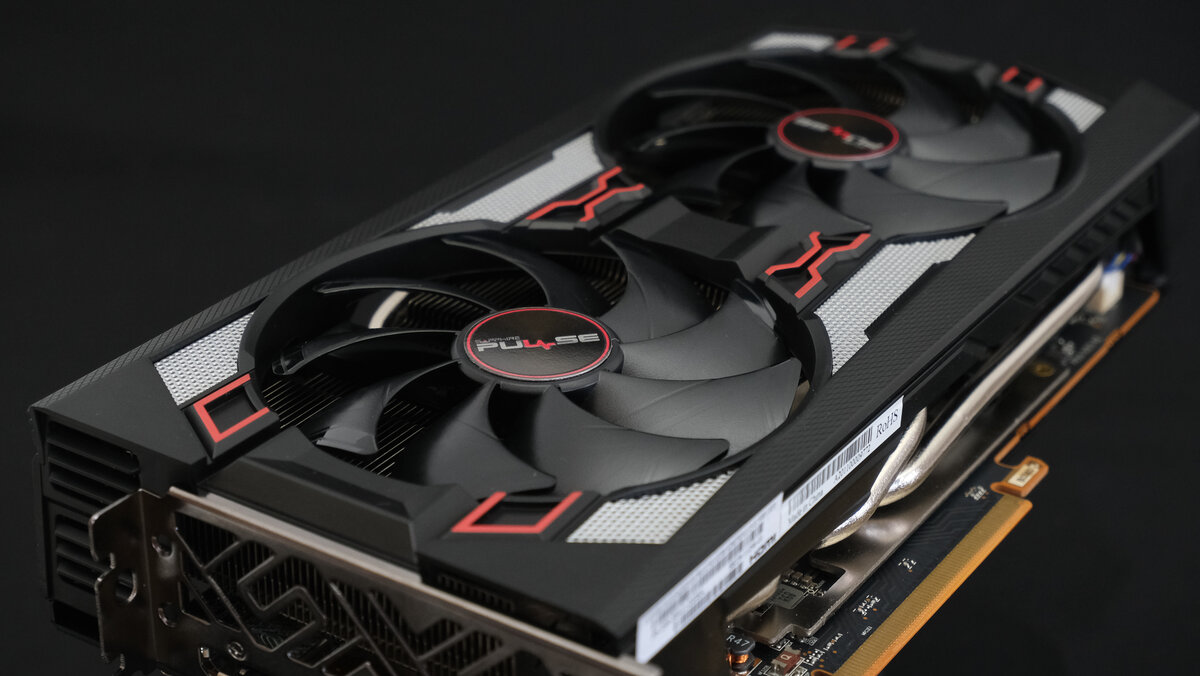 Два 95 мм вентилятора отвечают за продув радиаторов. Внешне карта практически неотличима от старших собратьев серии RX 5700. Видеокарта не обладает большим энергопотреблением и отвести 160 Вт тепла без лишнего шума явно по силам системе охлаждения, но выводы буду делать после соответствующих тестов.