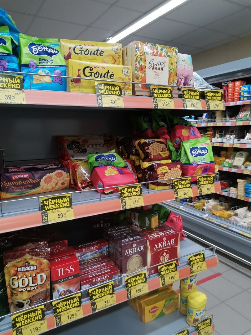 Давненько не было по-настоящему достойных распродаж среди супермаркетов, где предлагались бы нужные продукты и товары со скидкой более 50%. Я уже привыкла, что акции дают нам небольшую выгоду, но в этот раз порадовать своих покупателей решил магазин "Дикси". Я особо не рассказываю про этот супермаркет, потому как и сама там редкий гость, и в принципе почти не нахожу здесь что-то недорогое, но в мае появилась возможность сэкономить хорошую сумму, купив при этом действительно то, что пригодится. Сразу отмечу, что распродажа длится всего 3 дня - 6, 7 и 8 мая, но она повторяется с периодичностью раз в несколько месяцев. В обзоре я хочу показать, какие цены есть в магазине, что мне удалось купить и как в принципе искать свою выгоду, если хотите потратить минимум средств. Начнем с того, что распродажа называется "Черный weekend" - именно такая надпись будет на ценниках тех товаров, которые участвуют в акции. Для того, чтобы понимать, о чем идет речь, покажу, как выглядят такие подборки в ма