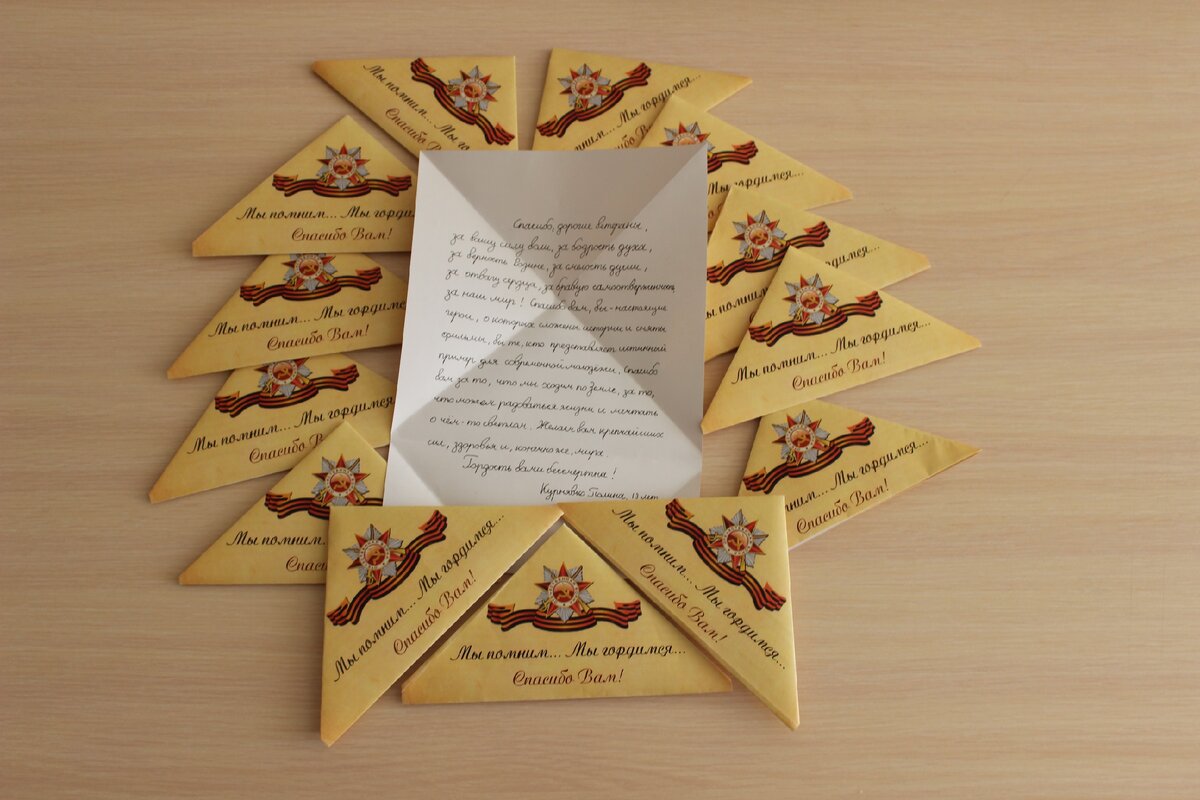 Написать своё «Письмо ветерану» с пожеланиями и словами благодарности за Победу в Великой Отечественной войне выразили желание более двухсот детей сотрудников и военнослужащих региональной Росгвардии. В юбилейный год Великой Победы ребята с удовольствием присоединились к Всероссийской патриотической акции «Письмо ветерану». В письмах ребята выразили свои чувства воинам-фронтовикам Великой Отечественной. Многие адресовали письма своим прадедам. Другие обращались к ныне живущим ветеранам. Юные авторы дополнили свои письма рассказами о своих родных-фронтовиках. И как во время войны с фронта и на фронт летели письма, полные душевных переживаний, так и через детские письма и самые теплые сердца ветеранам была передана бесконечная благодарность! «Здравствуй, дорогой Ветеран! Пишет Вам мальчик Дима, ученик 5 класса. Совсем скоро у нас будет праздник: 9 мая – День Победы! Вам большое спасибо, что Вы сумели, что победили наших врагов! Вы герой нашей страны! Очень смелый и отважный! Я горжус